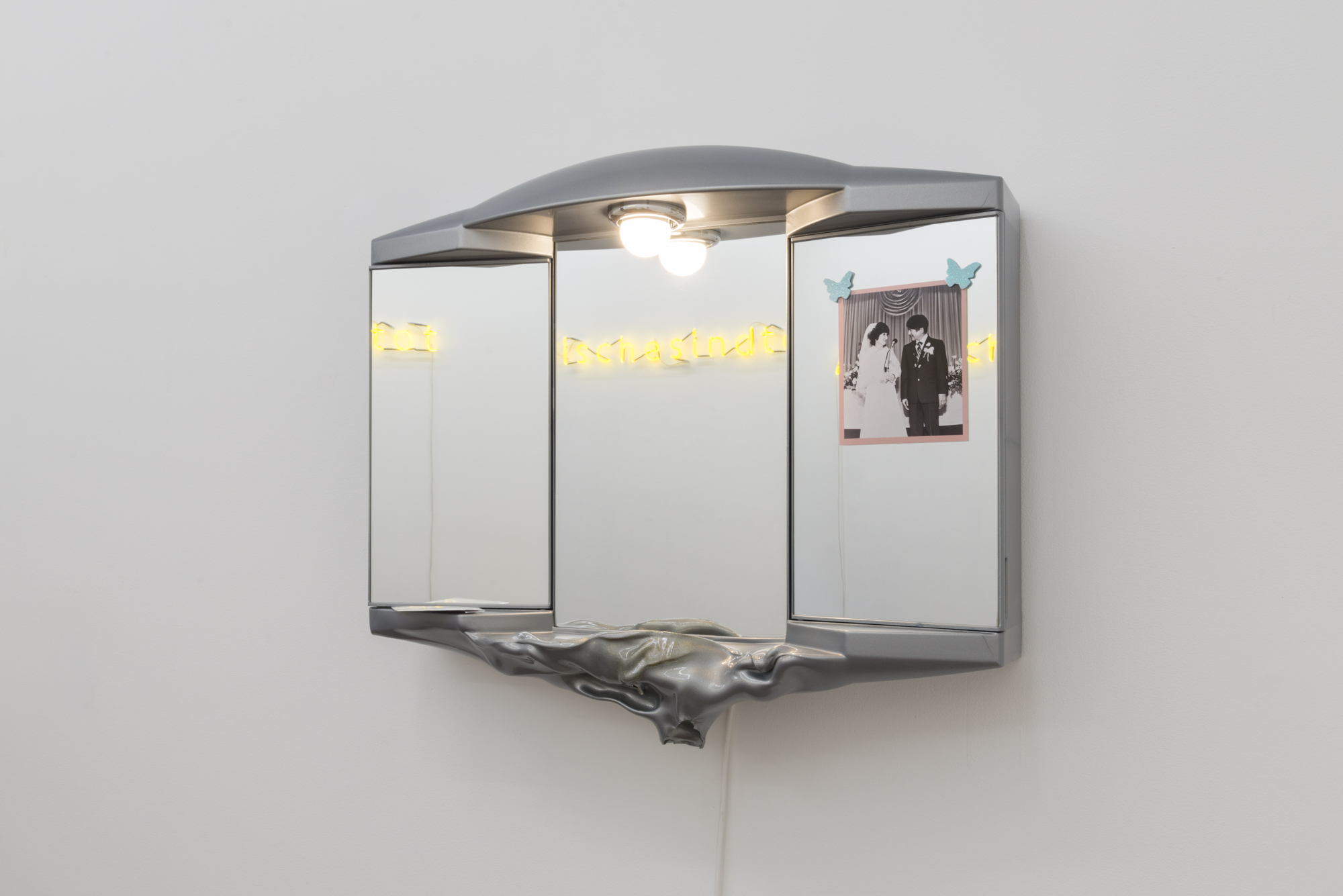 2023, 62 x 55cm, bathroom mirror cabinet with light, AI generated image, digital print, stickers